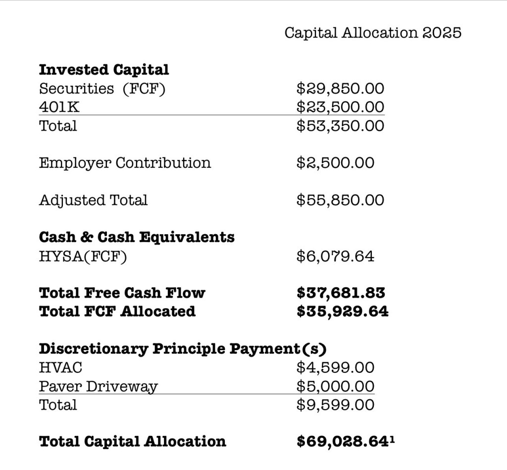 My long-term goal is to be free of consumer debt and only carry mortgages on rental properties. So if I finance something along the way, any extra cash flow goes toward paying it off aggressively. Which is what you see at the bottom under Discretionary Principle Payments
